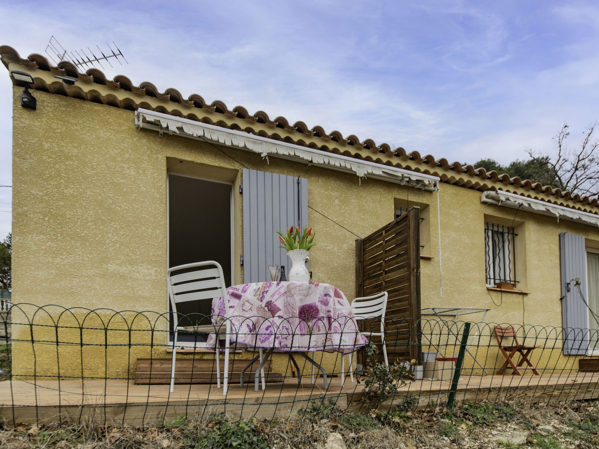 Reihenhaus "Le petit Verdillon". Im Ortsteil Biver. Zur Mitbenutzung: Garten 1'000 m2 (eingezäunt), Parkplatz auf dem Grundstück. Einkaufsgeschäft, Lebensmittelgeschäft 500 m, Supermarkt 1 km, Restaurant, Bar, Bäckerei, Café 500 m, Sandstrand "Carry le Rouet" 36 km, See de Peyrolles 36 km. Sporthafen 27 km, Golfplatz 12 km. Nahe gelegene Sehenswürdigkeiten: Aix en Provence 15 km, Marseille 27 km, Cassis Les Calanques 50 km. Bekannte Seen in der Umgebung sind gut erreichbar: Peyrolles 36 km. Wandergebiete: Sainte Victoire 21 km. Bitte beachten: Fahrzeug empfohlen. Besitzer wohnt in separatem Hausteil.